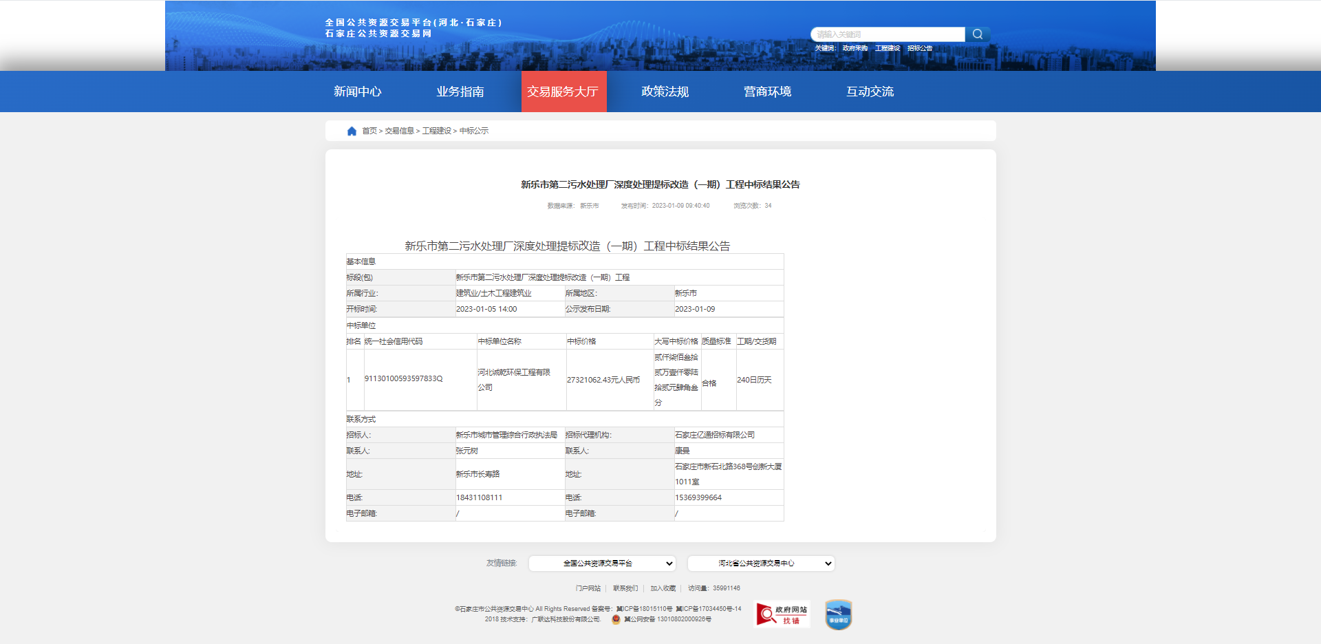 2023年1月5日,由新樂(lè)市城市管理綜合行政執(zhí)法局招標(biāo)的“新樂(lè)市第二污水處理廠深度處理提標(biāo)改造(一期)工程項(xiàng)目”,我公司憑借良好的信譽(yù)、雄厚的技術(shù)實(shí)力,加之優(yōu)秀...